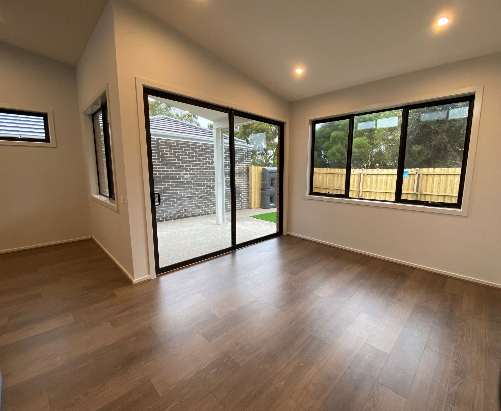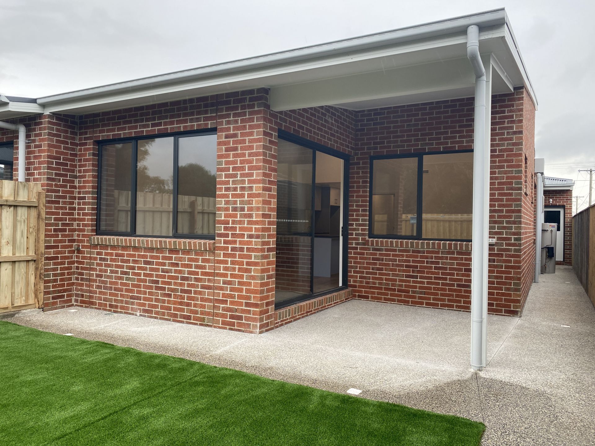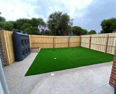 - Low maintenance gardens with artificial turf in the rear