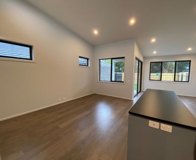 The open plan kitchen / living / dining area has a spacious feel with high raked ceilings and opens onto a private landscaped courtyard.